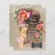 Burlap chic, rendas e pérolas russos com princesa adorável em calças de rúfle vestindo uma corda de pérolas em uma bela braçadeira e fundo de renda. Este chic rustic burlap lace e o convite para chás de fraldas pérolas são facilmente personalizados para o seu evento, adicionando os seus detalhes no estilo e cor da fonte, bem como o texto da sua escolha.