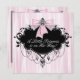 Elegante cor-de-rosa e arco preto de candelabro rosa e princesa preta convite para chá de menina. Adicione seus detalhes à frente e atrás deste belo convite de chá de fraldas rosa e preto adicionando seus detalhes de evento, estilo de fonte, tamanho de fonte e cor e texto. Observe que todos os designs de convite que você encontrará no Zazzle são gráficos impressos em estoque de papel plano sem joias reais, arcos, levantados, gravados em relevo ou peças ou peças adicionadas.