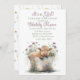 Adorável convite para chá de fraldas de vaca em terras altas. Edite facilmente com seus detalhes pessoais.