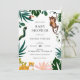 Convite para chá de fraldas com aquarela divertida, animais da selva e folhagem. Personalize com seu texto. Clique em "Personalizar mais" para editar o estilo, o tamanho e a cor da fonte, se desejar.