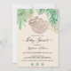 Um belo convite para Chás de fraldas da selva. Este adorável convite para o chá de fraldas apresenta um sorridente preguiça-bebê pendurado num galho, enquadrado com folhas verdes de coloração aquosa da selva. Perfeito para um chá de fraldas neutro em termos de gênero. O verso é decorado com um padrão de folha. Personalize este convite com os seus detalhes. Original Watercolor © Michele Davies.