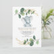 Este simples mas elegante convite para o chá de fraldas apresenta um adorável elefante bebê e um verde-aquarela moderno em verde macio e ouro. Vem com um padrão de folha correspondente no verso. Use os campos modelo para adicionar seus detalhes. Se quiser alterar o estilo da fonte, a cor ou o posicionamento do texto, basta clicar no botão "Personalizar Mais".