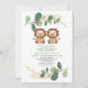 Este simples mas elegante convite para chás de fraldas neutro apresenta adoráveis leões gêmeos e um verde-aquarela moderno em verde macio e ouro. Vem com um padrão de folha correspondente no verso. Use os campos modelo para adicionar seus detalhes. Se quiser alterar o estilo da fonte, a cor ou o posicionamento do texto, basta clicar no botão "Personalizar Mais".