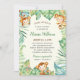 Este doce convite de chá de fraldas da selva apresenta macacos pintados manualmente bonitos e folhas tropicais de aquarela. A design neutra do gênero funciona para chás de bebês, chás de bebês, ou chás de fraldas onde o gênero é um mistério! Use o modelo para personalizar facilmente suas informações de chá.
