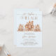 O convite para Chá de fraldas da vila Snowy Winter Boy com um tema para uma casa de pão de gengibre e um cria uma encantadora e acolhedora cena de terra maravilhosa do inverno. O convite apresenta uma deliciosa e caprichosa vila de casas de pão-de-gengibre assoadas com gelo de "neve", rodeadas por delicados flocos de neve. Cada casa, intricadamente decorada com gelo, gotas de goma e pequenos sotaques de doces, representa o apoio acolhedor de amigos e familiares à medida que se juntam para celebrar o novo bebê. A paleta de cores é macia e convidativa, usando tons neutros de inverno. É um convite que promete um cheio de calor, amor e entusiasmo compartilhado em meio a uma cena de inverno aconchegante. Itens correspondentes disponíveis.