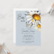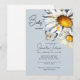Convite para chás de fraldas. Disies e borboleta de fundo azul poeirento.