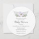 A Elegante chá de fraldas de cor d'água, uma garota botânica ou um convite de criança, enquadra seus detalhes com uma borda superior de folhas pastel, asas de anjo e flores em pálidos, tons de cinza, roxo e verduras em um fundo branco puro em um formato de círculo único. Os detalhes de seu evento são definidos em uma fonte elegante e tradicional de script de serif e caligrafia. Este convite inclui uma escritura religiosa que você pode editar para incluir um verso bíblia que atenda às suas necessidades. O convite perfeito para primavera, verão, outono do outono, tema rústico ou jardim, mostra chás de fraldas. Para ver mais designs como este, visite o VG Invites em www.zazzle.com/vginvites