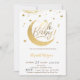 Dourada lua reluzente e estrelas. Esses convites para chuveiros de bebês são facilmente personalizados para seu evento simplesmente adicionando seus detalhes.