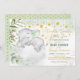Twinkle Twinkle Little Star convite temático com um bebê elefante giro, verde-aquarela macia e lua sonhadora e elementos estelares