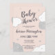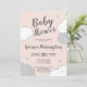 Celebre sua menina no caminho com este convite de chá de fraldas branco e rosa super giro com nuvens e estrelas e uma fonte moderna tipografia prateada. Todas as cores de elementos e texto são personalizáveis.