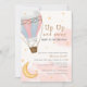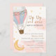 Convite de chá de fraldas bonito e adorável, tema de chá de fraldas, tema de chá de fraldas de aventura, tema de viagem de aventura, apresentar nuvem rosa-aquarela, lua e estrelas e balão de ar quente com palavras "Para cima e para longe". Perfeito para o tema da chá de fraldas e das estrelas. Você pode personalizar texto e cor.