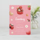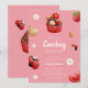 Convite ao chá de fraldas com ilustrações de lovebug, cupcake, flor e morango bonitinho, todas num esquema de cores vermelho, branco e castanho claro. Em conjunto com as ilustrações estão uma fonte de script divertida e um sans serif elegante no qual todas as informações personalizadas são escritas. Veja na nossa loja mais itens desta coleção.