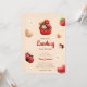 Convite ao chá de fraldas com ilustrações de lovebug, cupcake, flor e morango bonitinho, todas num esquema de cores vermelho, branco e castanho claro. Em conjunto com as ilustrações estão uma fonte de script divertida e um sans serif elegante no qual todas as informações personalizadas são escritas. Veja na nossa loja mais itens desta coleção.