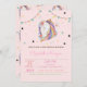 Um unicórnio bonito com flores e estrelas, convite para chá de fraldas. Estes convites para o chá de bebê unicórnio são facilmente personalizados para o seu evento simplesmente adicionando os seus detalhes.
