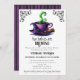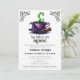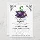 Um Bebê está a criar um convite para o Chá de fraldas do Café das Bruxas do Dia das Bruxas - É uma celebração de outubro assustadora com a chegada rápida de gêmeos! Um simples e mínimo chá de fraldas assustador convida perfeito para um chá de fraldas dos gêmeos do Dia das Bruxas. Apresentando uma xícara de café quente com tema bruxa em cores brutas clássicas de verde, roxo e preto com um chapéu de bruxa e sotaques de vassoura-bruxa com moldura de rolagem vintage nos cantos superiores. Fontes assustadoras e afligidas acrescentam ao sentimento de Halloween deste convite de chá de fraldas. Personalize este modelo de convite para o chá de fraldas de Halloween editável com seus próprios detalhes de evento. Disponível como um modelo imprimível para download, envie-o facilmente via texto ou mídia social.