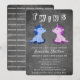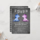 Cartão de convite para chás de fraldas de um pequeno bebê unicórnio. Um rapaz moderno e uma rapariga, convidados gêmeos unicórnios para a tua família e amigos. O design tem dois pequenos unicórnios um azul para um menino e um rosa para uma menina. O fundo é um quadro-negro moderno e o texto é em cor branca moderna. Personalize o convite com suas informações.
