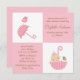 Convites à moda do chá de fraldas que caracterizam uma ilustração do bebê bonito e um pássaro em um guarda-chuva. Estúdio do cacau do © da arte