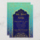 O cartão do convite de festas do chá de fraldas do tema de Bollywood ou das noites árabes no aqua e o ombre azul com folha de ouro e brilho do ouro efetuam acentos.