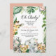 Animais Safari Greenery Girls Chá de fraldas Convite para apresentação de chá de fraldas de safari de menina doce, com seis animais da selva de cor d'água, arranjo floral e alguma folhagem tropical. Este convite para chás de fraldas com tema safari é uma forma adorável de convidar convidados para o chá de fraldas com tema safari de uma menina.