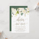 Convide a família e os amigos com este convite para chás de fraldas florais brancos. Apresenta rosas brancas de aquarela e híbridos com verde e roteiro elegante. As cores são perfeitas para chás de fraldas neutros em termos de gênero. Personalize adicionando nomes, data, hora, local e outros detalhes.