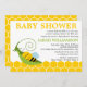 © 2012 Designs socialitas. A mãe-abelha certamente se animará para comemorar seu próximo nascimento com este convite de chá de fraldas de abelha. Nosso design vetor incorpora uma doce pequena pod de ervilha dentro e um padrão de alveolado. Um convite maravilhoso para o chá de fraldas neutro em termos de gênero.