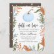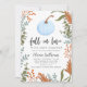 Cartão de convite à apresentação de chás de fraldas, cômico e rústico, com ilustração de uma abóbora azul com folhas de outono e verde à volta do cartão. O texto diz "apaixonar-se pelo bebê XX." Perfeito para o chá de um menino perto do Dia de Ação de Graças.