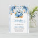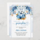 Celebre a chegada de uma doce abóbora com este charmoso convite para chás de fraldas! Apresentando uma única abóbora azul rodeada por florais de aquarelas em tons de azul, laranja e creme, esta design traz uma nova reviravolta ao tema clássico do chá de fraldas de outono. Perfeito para comemorações do outono ou coletâneas inspiradas na colheita, este convite combina encanto sazonal com suave elegância. Totalmente personalizável, é ideal para honrar um menino e criar um evento confortável e memorável. Bem-vinda sua abóbora de estilo com um design que é doce e sofisticado!