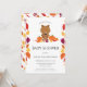 Um chá de fraldas de abóbora de urso com um urso fofo e três abóboras com folhas coloridas de outono. Simplesmente personalize o texto, adicione estes convites ao seu carrinho e tenha um chá de fraldas maravilhoso. Chá de fraldas de Convite de Abóbora de Queda de Urso Design de Natal | ©Melissa Patton - Artista/Ilustrador