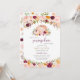 Adicione um pouco de elegância à sua celebração do outono com este incrível Convite para Chá de fraldas Burgundy Pumpkin. Perfeito para uma menina, este design apresenta uma abóbora de pêssego suave no centro, maravilhosamente cercada por uma rica burgundy, rosa-pincel e cor-de-rosa-quente, e flores laranja-quentes com folhas de outono. Coordenar arranjos florais também decoram o topo e o fundo do convite. Quer você esteja planejando uma aconchego de outono aconchegante ou um chá sofisticado com um tema floral, este convite captura o calor e a beleza da estação. BBS474