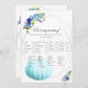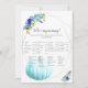 Flores de bebê, azuis e amarelas, e quadros geométricos de prata para comemorar em um chá de fraldas. Uma grande abóbora azul aqua na parte inferior esquerda. Editar áreas de texto para criar um jogo de chá de fraldas exclusivo e especial de Quem é Minha Mamãe?