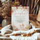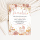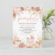 Bem-vindos a uma abóbora com este encantador convite de chá de fraldas de outono para uma menina! Este design de pincel e ouro contém abóboras rosa pintadas à mão, florais de aquarela e um rolo antiquado. É perfeito para uma celebração de outono com elegância rústica. Personalize com seus próprios detalhes de chá de fraldas. Ideal para um chá de fraldas aconchegante com tema de queda.