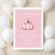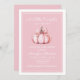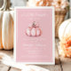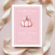 Convite à Chá de fraldas de Abóbora Rosa, Bonita. Celebre a chegada de uma menina com este adorável convite para chás de fraldas! Apresentando um charmoso design de abóbora rosa com um arco rosa e elegante, este convite é a forma perfeita de honrar a futura mãe. Compartilhe a alegria e o entusiasmo com os amigos e a família, enviando hoje este belo e especial convite!