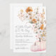 Um Pequeno Pumpkin Está No Caminho dá o tom para este doce e elegante convite ao chá de fraldas, perfeito para celebrar uma garotinha no outono ou outono. O design apresenta um buquê de flores aquáticas colocadas à direita, apresentando uma mistura macia de cor branca, laranja queimada, creme e flores cor-de-rosa pinceladas. Duas abóboras cor-de-rosa sentam-se na parte inferior direita, pareadas com folhas verdes macios para criar um aspecto quente, acolhedor e convidando a olhar. O texto é estilizado em uma combinação de script manuscrito e fontes clássicas de serifa, dando ao design um sentimento moderno, mas eterno. Perfeito para chás de fraldas de outono com um toque feminino, este design funciona lindamente para celebrações rústicas, boho ou clássicas. Totalmente personalizável e disponível como cartão impresso ou arquivo digital descarregável.