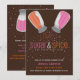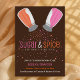 Este adorável convite de festas chá de fraldas tem o tema Açúcar e Especiarias! A design tem dois saleiros, uma laranja para representar especiarias e uma rosa para representar doce. Eles estão sacudindo pequenos flocos e corações bonitinhos sobre as palavras "Açúcar e Especiarias". O fundo é marrom-chocolate. Estes convites são divertidos e fofos! O corte de convite pode ser alterado para diferentes estilos e bordas!
