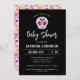 Convite para Chás de fraldas de crânio de açúcar rosa, preto-branco