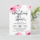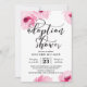 O convite para chás de fraldas de adoção de na moda apresenta flores cor-de-água rosa e uma fonte de caligrafia moderna.
