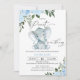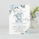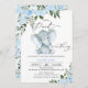 Chá de fraldas de amendoim com elefante de folhagem azul Convite para apresentação de chá de fraldas de elefante doce ou pequeno amendoim com tema de amendoim, com um elefante agudo de cor aquosa, dois arranjos florais azuis e uma rubrica caligráfica moderna. Este menino é um pequeno amendoim no caminho o convite para chá de fraldas também apresenta um padrão floral design no verso. É ideal para alguém que procura o convite de chá de fraldas de um menino e elefante ou de um bebê.