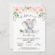 Convite para Chá de fraldas de amendoim de elefante floral cor-de-rosa