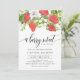 Um bebê doce de fruta está a caminho! Convide convidados para o seu evento com este convite de chá de fraldas personalizável. Apresenta terra de cor-de-água de morangos e flores de morango. Personalize este convite de chá de fraldas de morango adicionando seus próprios detalhes de evento. Este convite para chás de fraldas de aquarela é perfeito para chás de fraldas de verão.
