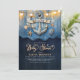 Convites Chá de fraldas de Âncora Marinho azul e Dourado