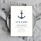 É um rapaz!, tema do chá de fraldas náutico, comemorar o próximo chá de fraldas com nossa simples âncora náutica moderna e azul marinho em cor bege. Você pode personalizar seu próprio texto e cor através de "personalizar este design".