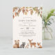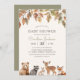 Convide amigos e família para compartilhar a alegria da sua chegada com este convite de chá de fraldas temático da floresta.
