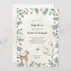 O convite para Chás de fraldas da Woodland de inverno apresenta uma moldura de inverno de verde-aquarela, cogumelos, bolotas, bagas e um veado e ave-doce.