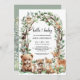 Celebrar uma doce chegada com este charmoso convite de chá de fraldas em matas! Apresentando uma lindíssima coroa ilustrada de galhos folhosos adornados com adoráveis animais de floresta — incluindo um urso bebê, fada, raposa, coelho, guaxinim, coruja, esquilo, e muito mais — esta design cria uma atmosfera quente e caprichosa perfeita para acolher um pequeno.
