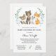Um chá de fraldas por correio é perfeito para aqueles que vivem uma longa distância dos entes queridos, mas ainda querem chá para que os pais estejam com amor e presentes para se prepararem para a chegada do seu bebê. Este chá de longa distância por convite por correio apresenta uma ilustração em aquarela de animais florestais com o poema de solicitação "Encontrar entes queridos neste momento pode ser tão duro. Então, se preferir, por favor envie seu presente ou cartão. E à medida que eles chegam dia a dia, eles vão sentir todo o seu amor de longe." Personalize com seu texto. Clique em "Personalizar mais" para editar o estilo, o tamanho e a cor da fonte, se desejar.