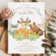 Adorável convite ao chá de fraldas, que inclui um cervo doce, urso, coruja, raposa e guaxinim enquadrado com uma delicada folha de flores rosa, enfiada num fundo de madeira rústica para um chá de fraldas neutro em termos de gênero. Sacudir nosso convite para ver uma coordenação de volta para um toque especial extra.