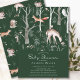 Doce design de bebê rústico apresentando uma cena florestal com cervo, porco-espinho, raposa, pássaro e coruja em um fundo verde-florestal. Visite o nosso compro para ver toda a nossa coleção de designs de animais florestais.