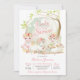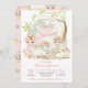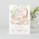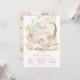 O convite para Chás de fraldas apresenta uma adorável aquarela, ovelha, gatinha, vaca, cordeiro e coelho enfeitado com flores e sentado debaixo de uma árvore.