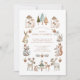 Maravilhosa e ilustrada chamada de chá de fraldas de animais da floresta, com animais da floresta, cogumelos e árvores ao redor do texto do convite.