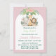 Convide amigos e família para celebrar a chegada de uma menina! Este convite temático safari apresenta impressão verde e adoráveis bichos-de-safari em um lindo fundo cor-de-rosa, se adequando à chegada de uma bebê na moda.